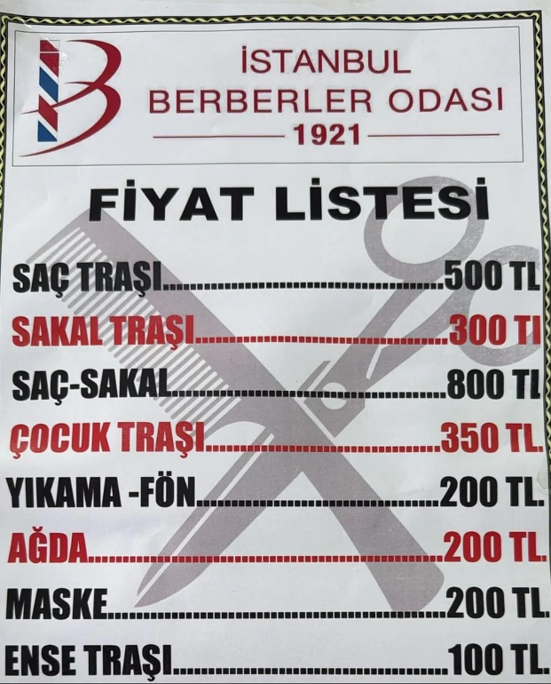 İstanbul Berberler Odası'nın yeni tarife kararıyla berber hizmetlerine yılbaşından itibaren zam geldi. Erkek saç tıraşı ücreti 500 TL'ye, saç–sakal tıraşı 800 TL'ye yükselirken; çocuk tıraşı 350 TL, yıkama-fön, ağda ve maske ise 200 TL olarak güncellendi.