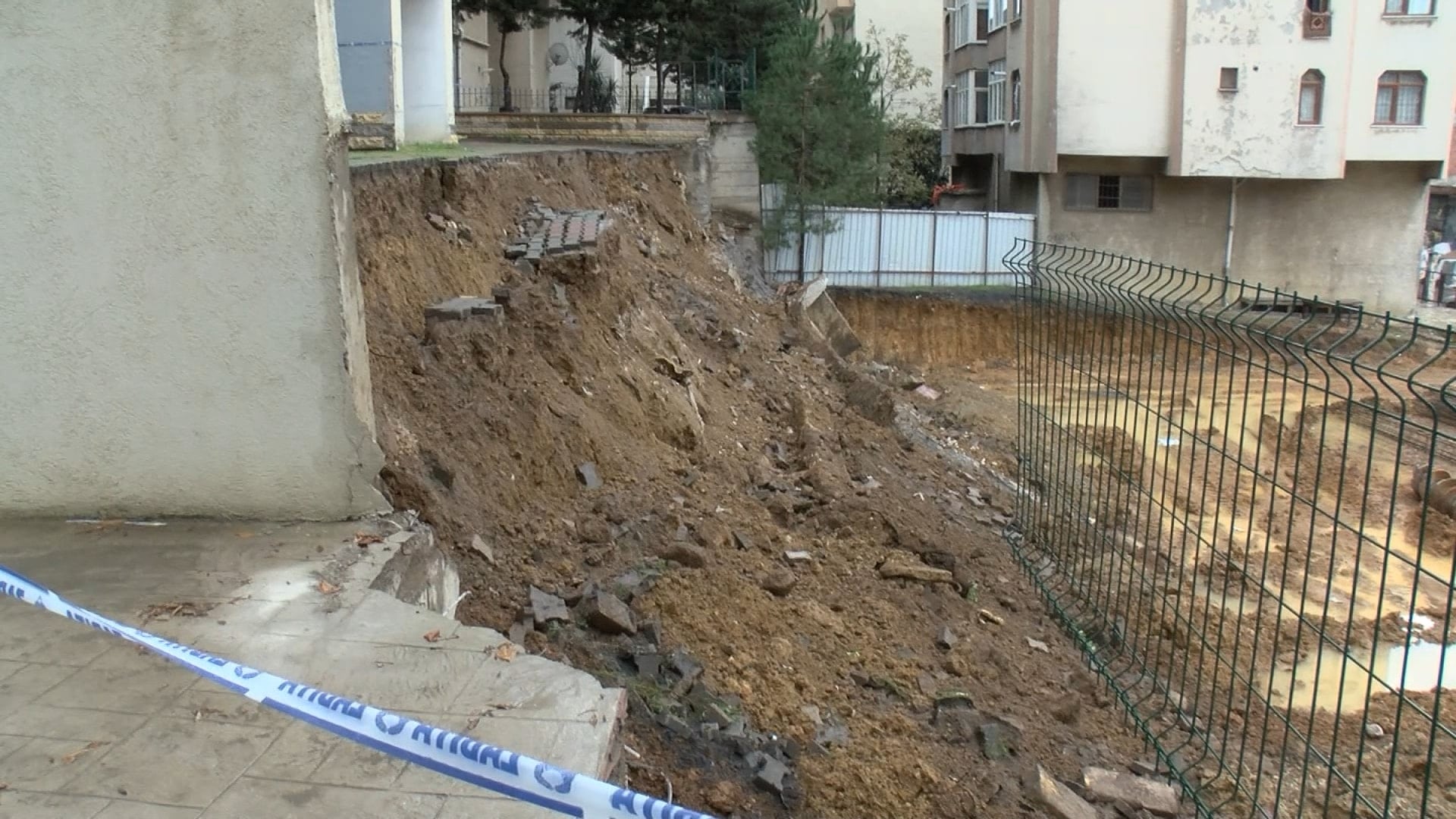 Belediye ekipleri ise çöken bölümün çevresine demir bariyer ve güvenlik şeridi çekti.