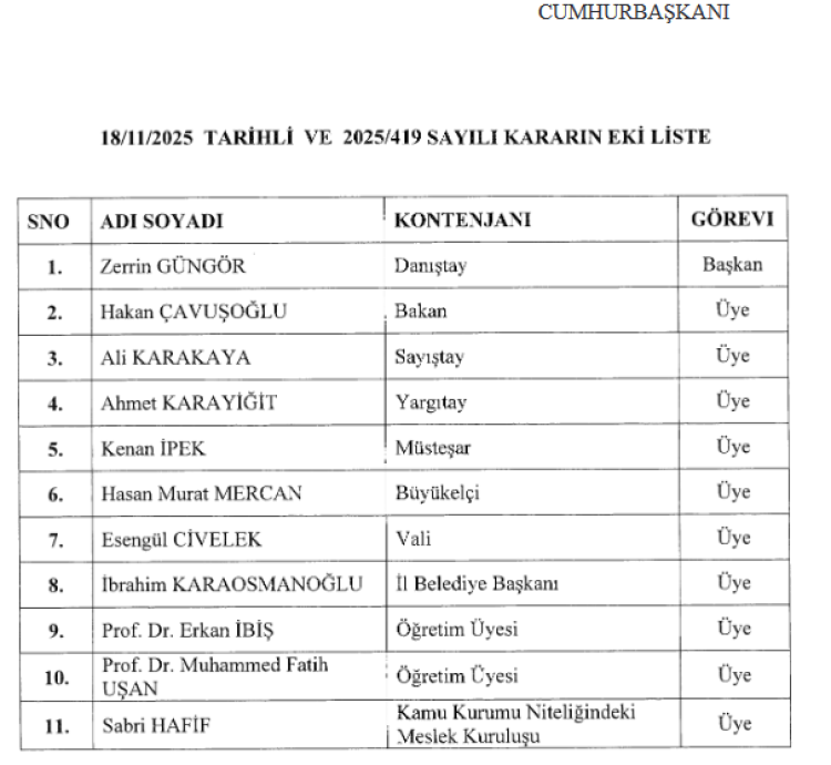 Karara göre, kurulun başkanlığını 2021 yılından bu yana sürdüren Zerrin Güngör yeniden atanırken, Güngör ile birlikte yeni dönemde kurulda görev yapacak üyeler de belli oldu.