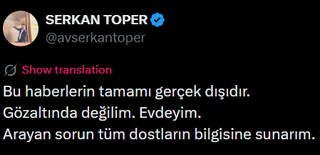 Operasyon sırasında MHP’nin Beşiktaş Belediye Başkan adayı Avukat Serkan Toper’in de gözaltına alındığı iddia edildi. Sosyal medyada hızla yayılan bu iddialar üzerine Toper, resmi hesabından bir açıklama yaparak gözaltına alınmadığını söyledi.