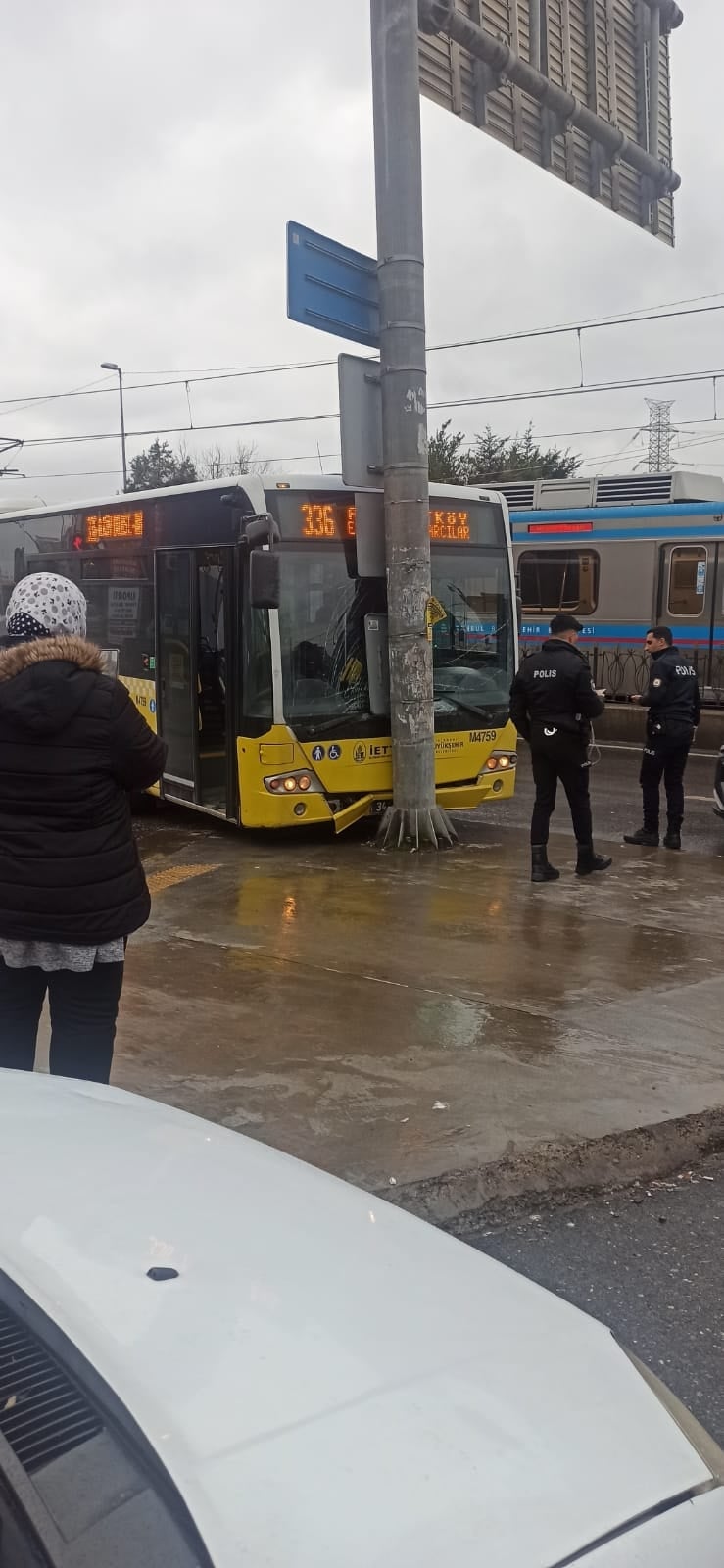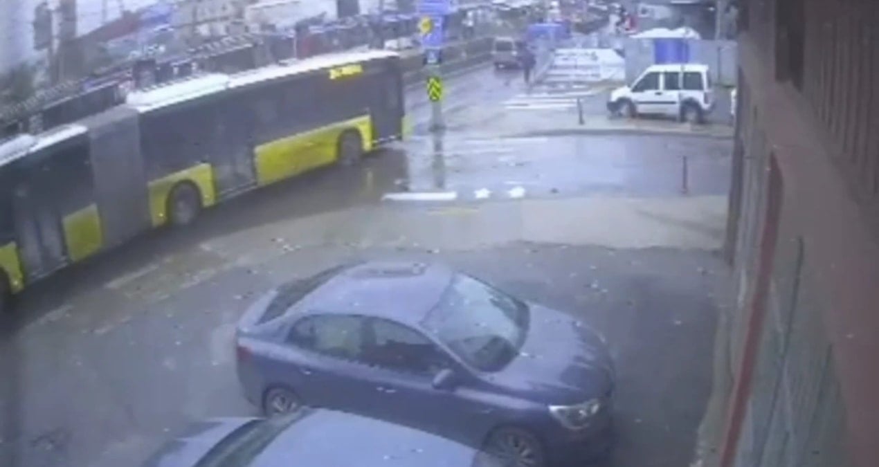 İlk olarak bir kamyonet kaygan zeminde kontrolden çıktı ancak direğe çarpmadan son anda durdu. Ardından gelen bir otomobil kayarak direğe çarptı. Son olarak körüklü İETT otobüsü aynı noktada kayıp tabelaya çarptı. Çarpma anı başka bir güvenlik kamerası tarafından saniye saniye görüntülendi.